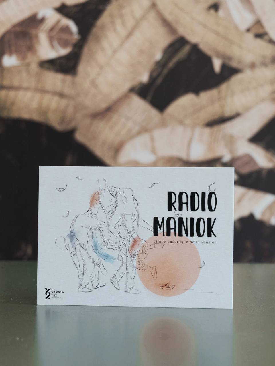 Réalisation d’une série de trois illustrations personnalisées destinées à l’impression au format A6 et A0 de la compagnie de cirque Cirquons Flex. Elles sont vendues après les représentations. Les illustrations reprennent l’imaginaire du spectacle Radio Maniok, et symbolisent des bulles de souvenirs de l’univers que vient d’explorer le spectateur après la représentation.
