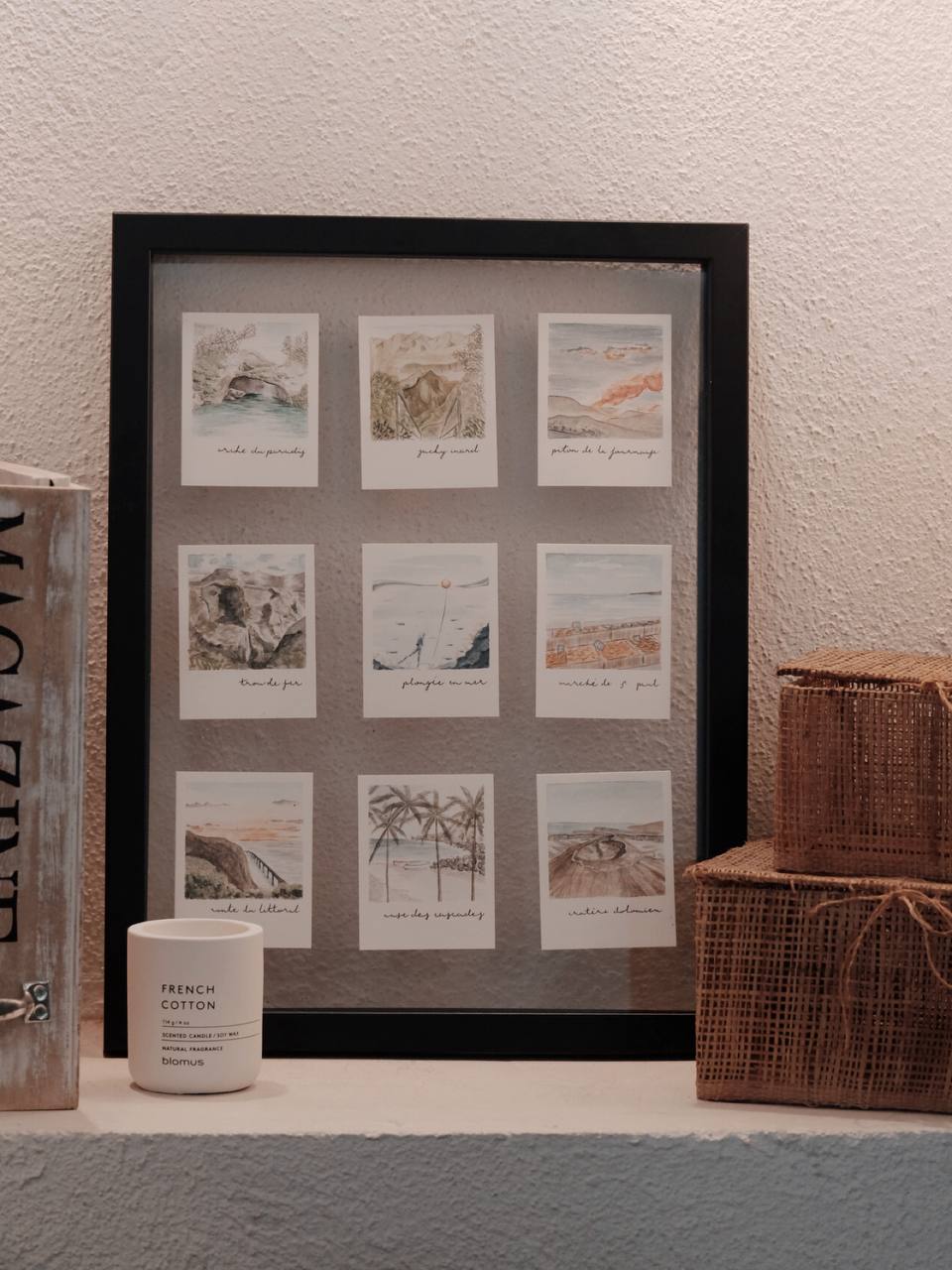 Réalisation d’une série de polaroid à l’aquarelle représentant les lieux emblématiques de la Réunion.