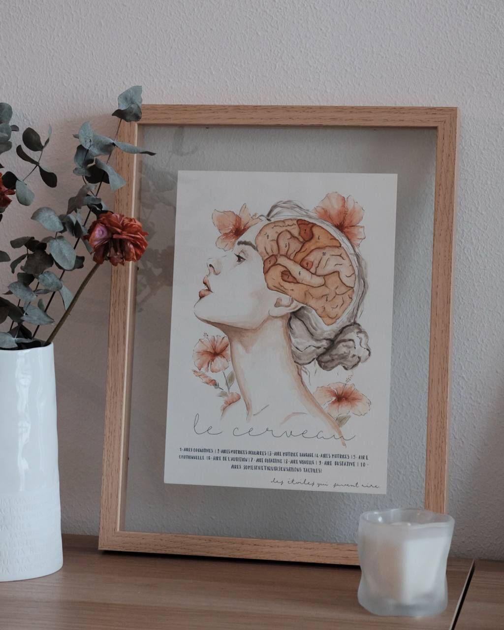 Une planche illustrée du cerveau, créée pour une orthophoniste, alliant précision et sensibilité, afin de rendre les mécanismes du langage plus accessibles et visuellement compréhensibles, tout en apportant une touche poétique à l’apprentissage.